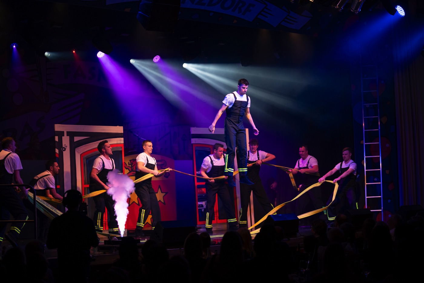 Bühnenhelfer, Elferrat, Tontechnik, Lichttechnik, Filmteam, Barteam, Dekoteam, Ordner, Einlass