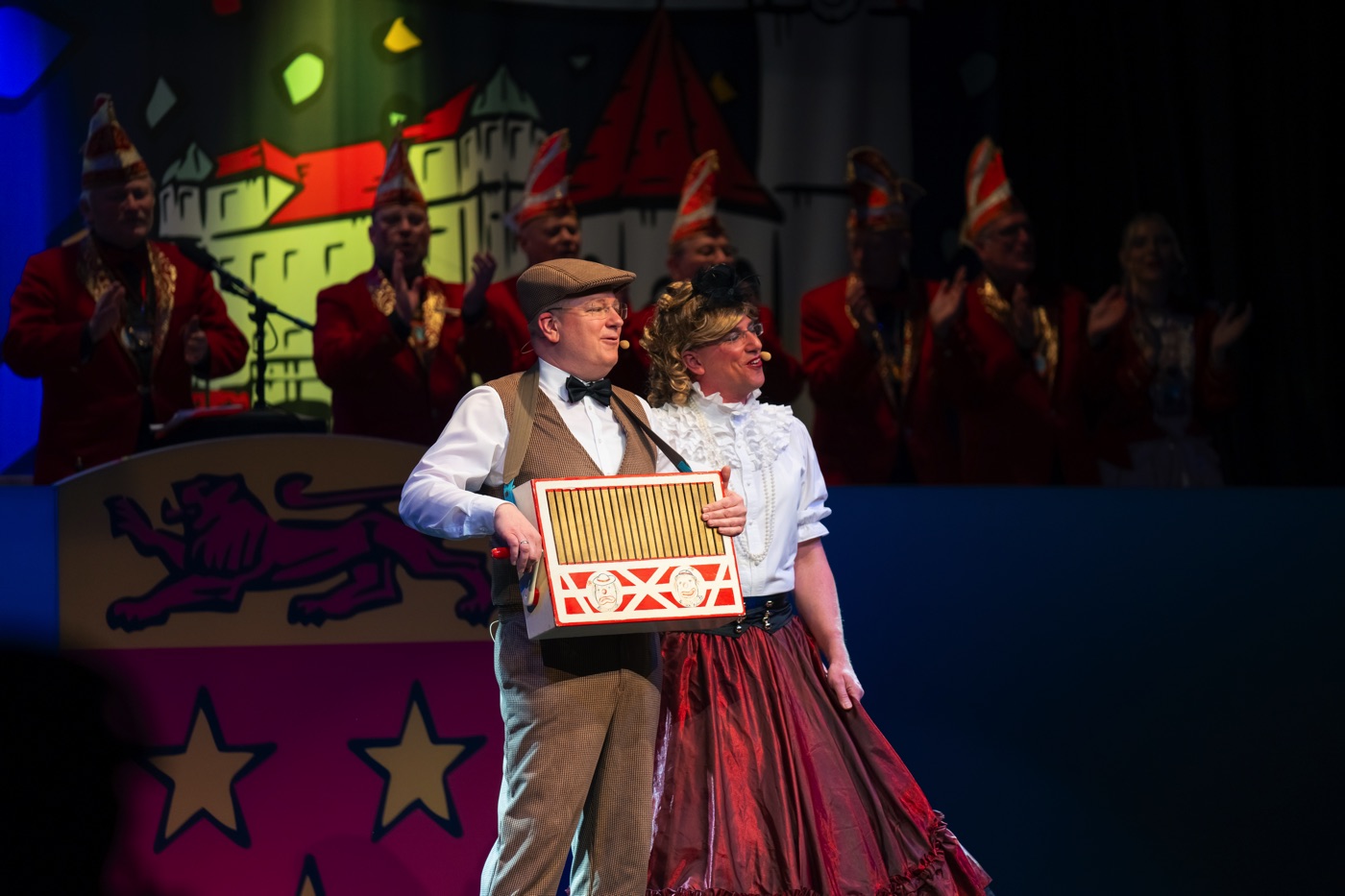 Mehr als nur Lückenfüller sind die traditionellen Gesangseinlagen von den Zwillingen und Eduard und Kunigunde, die jeweils auf ihre ganz eigene Art lokale Begebenheiten aufs Korn nehmen.